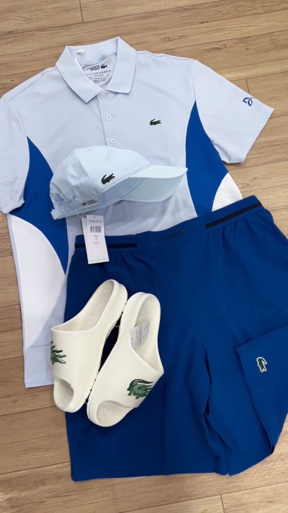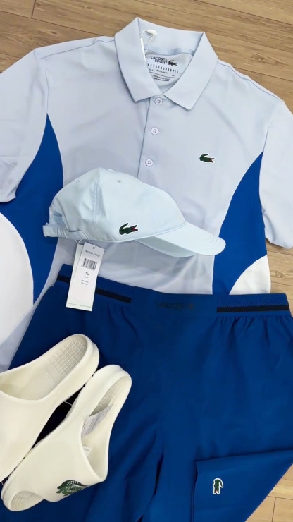 Home / Lacoste T-shirt Set / Stylish Color-Block Polo Two-Piece Set