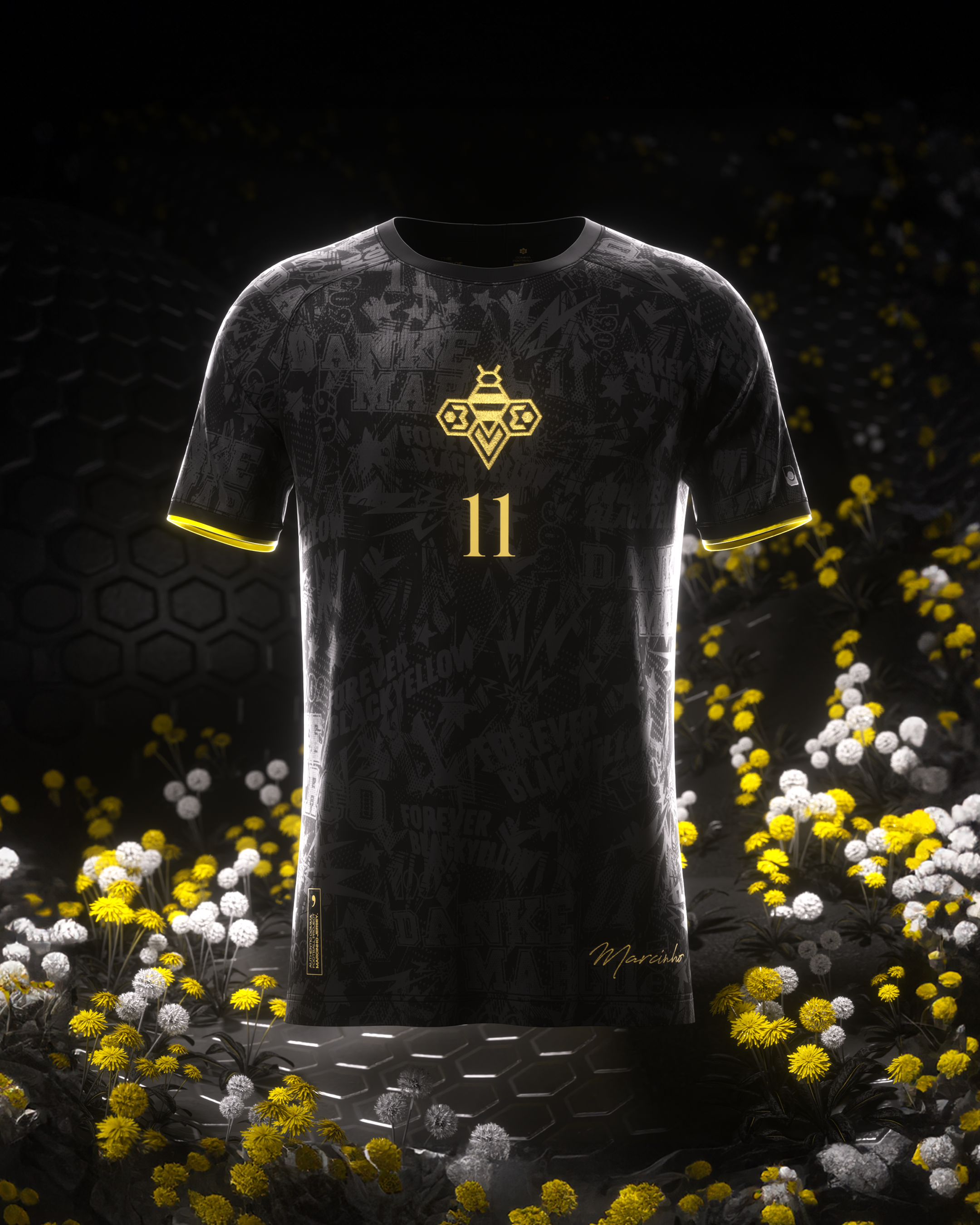 A tribute to football’s most loyal player, Marcinho. A classic black jersey inspired by the city of Dortmund. Embroidered with a redesigned bee logo, Marcinho’s entire career on the sleeve - and the iconic 11.