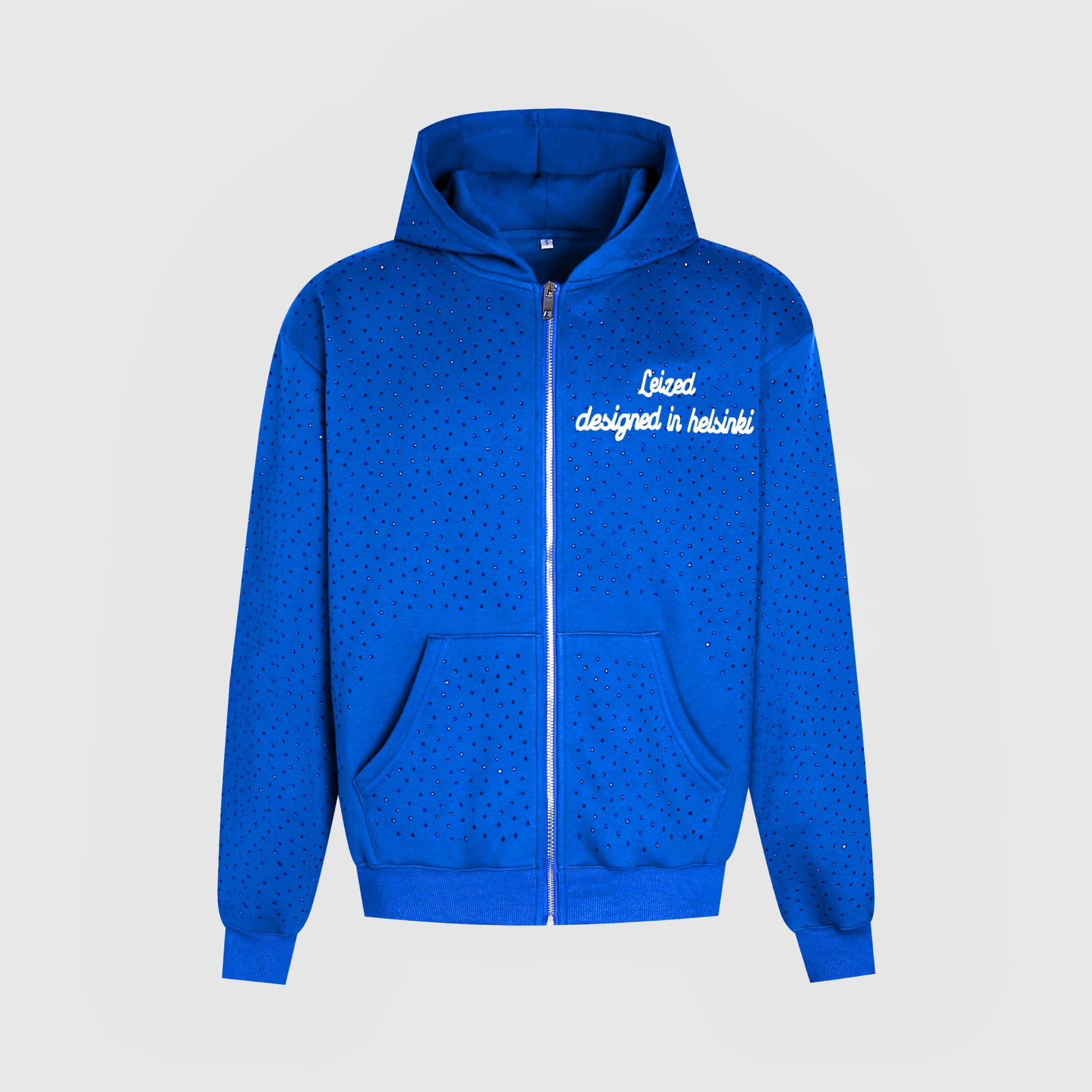 TIMELESS RHINESTONE ZIP-UP HOODIE - BLUE