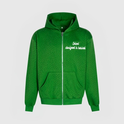 TIMELESS RHINESTONE ZIP-UP HOODIE - GREEN
