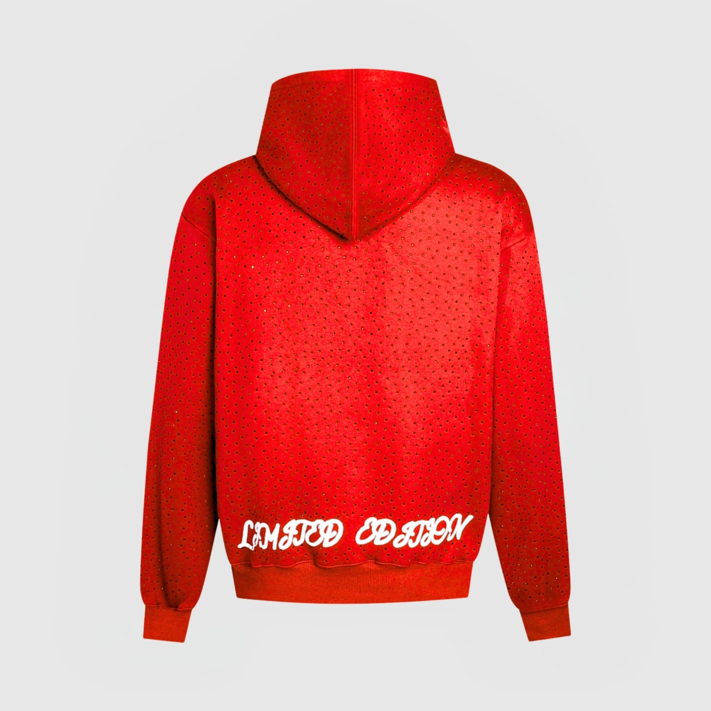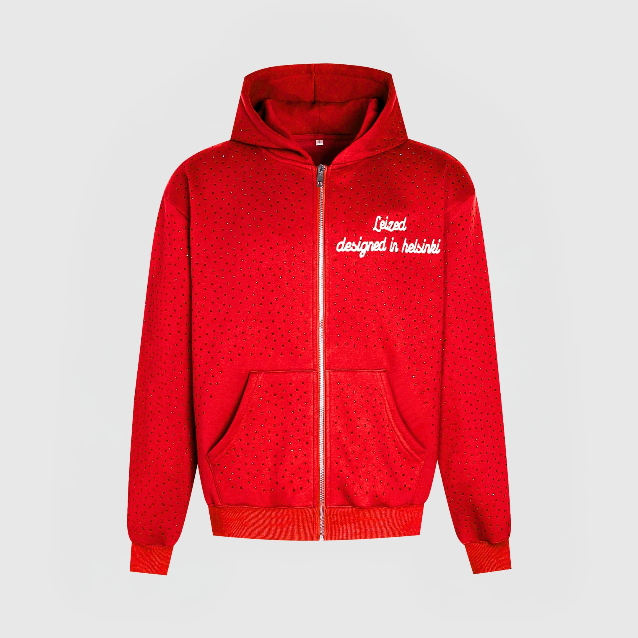 TIMELESS RHINESTONE ZIP-UP HOODIE - RED