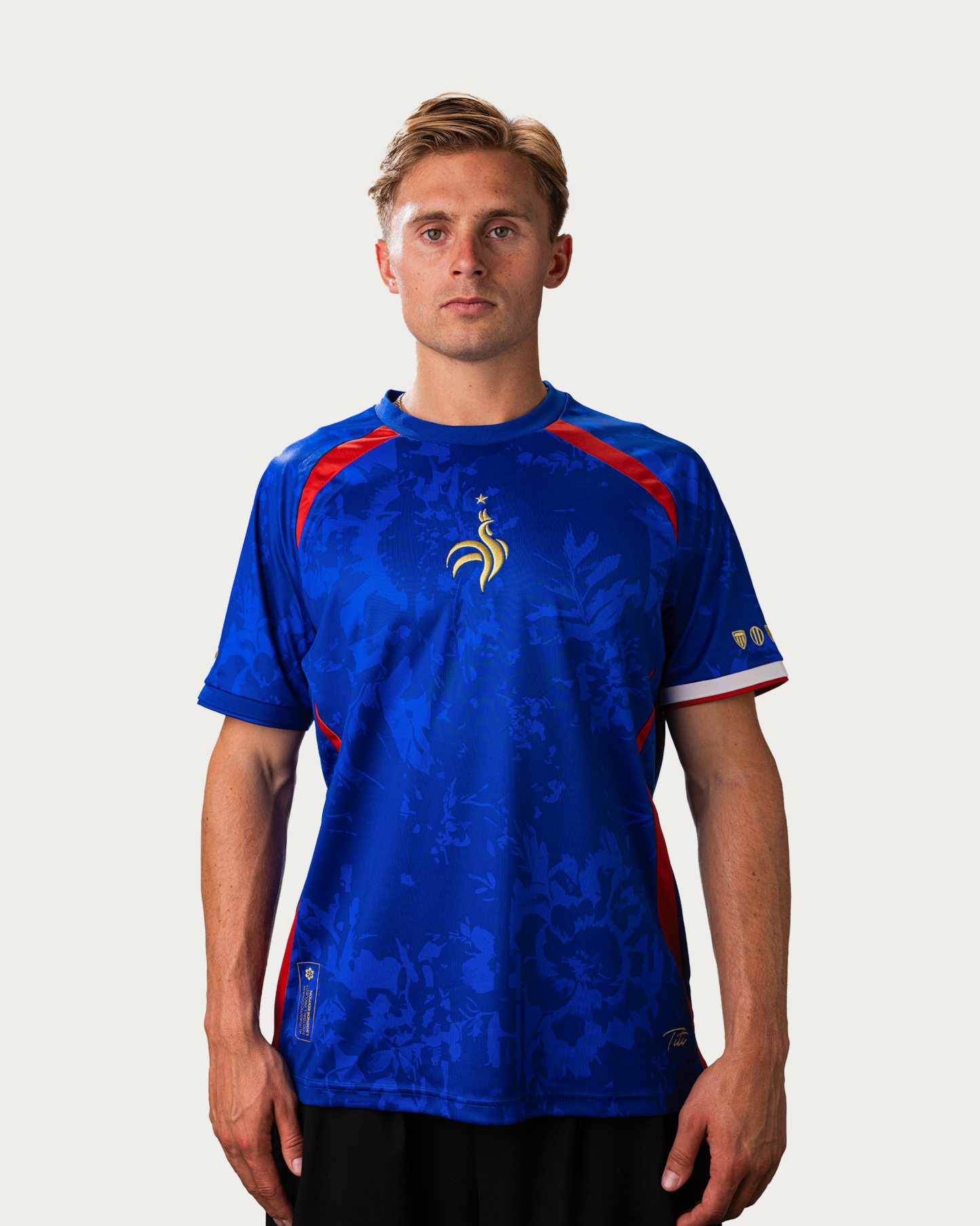 Featuring the crest of France, his club history from Monaco to New York, a captain's armband, a silhouette of his iconic celebration, and a pattern inspired by flowers from France. A jersey that captures the entire career of Titi.