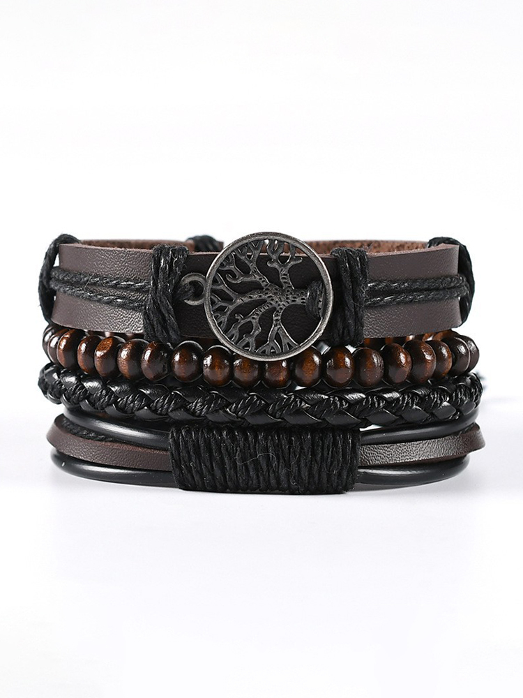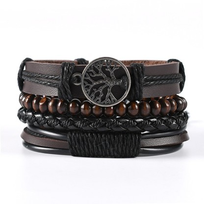 Tree Of Life Handmade Pu Braided Men's Bracelet