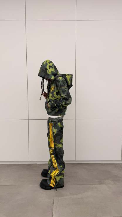 Rich custom FV camo saturation. Yellow accent detailing that cuts clean. Zip closure. Balanced weight. Elevated construction.