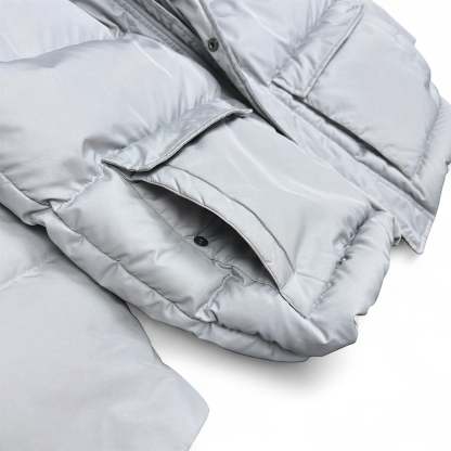 ? Tipp: Diese beige Daunenjacke l?sst sich perfekt mit weiten schwarzen Trackpants oder einer Cargohose kombinieren �C ideal f��r einen cleanen Y2K-Winterlook.