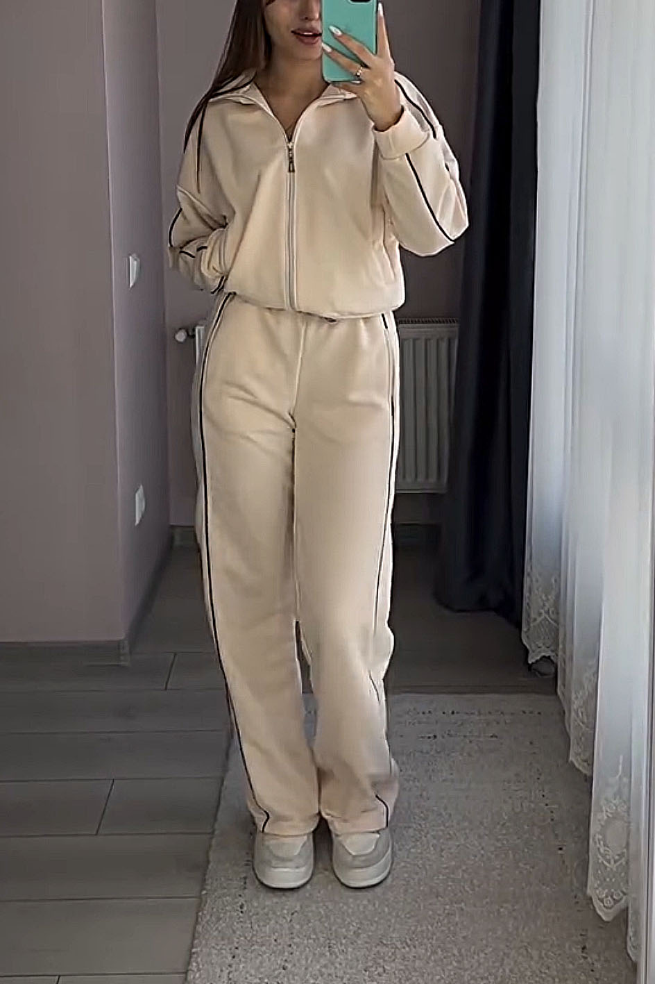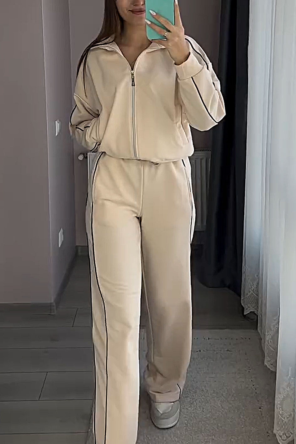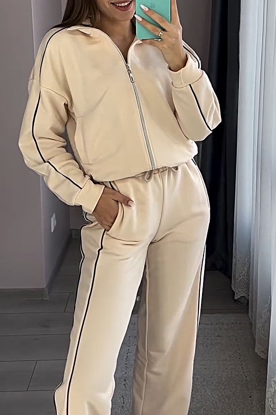 Women'S Stylish Contrast Color Casual Top And Pants Two-Piece Set