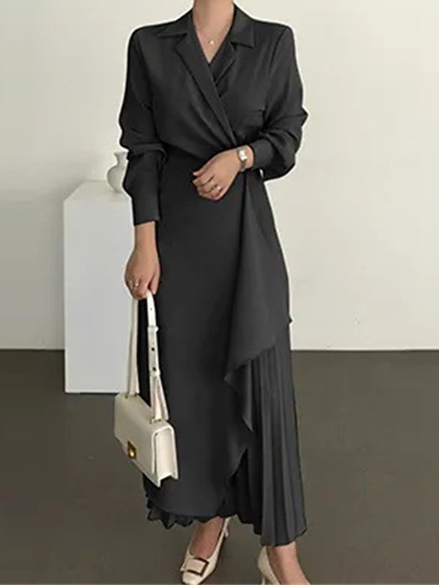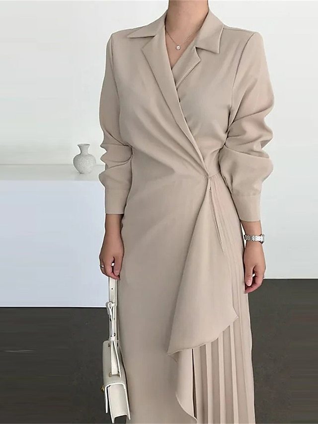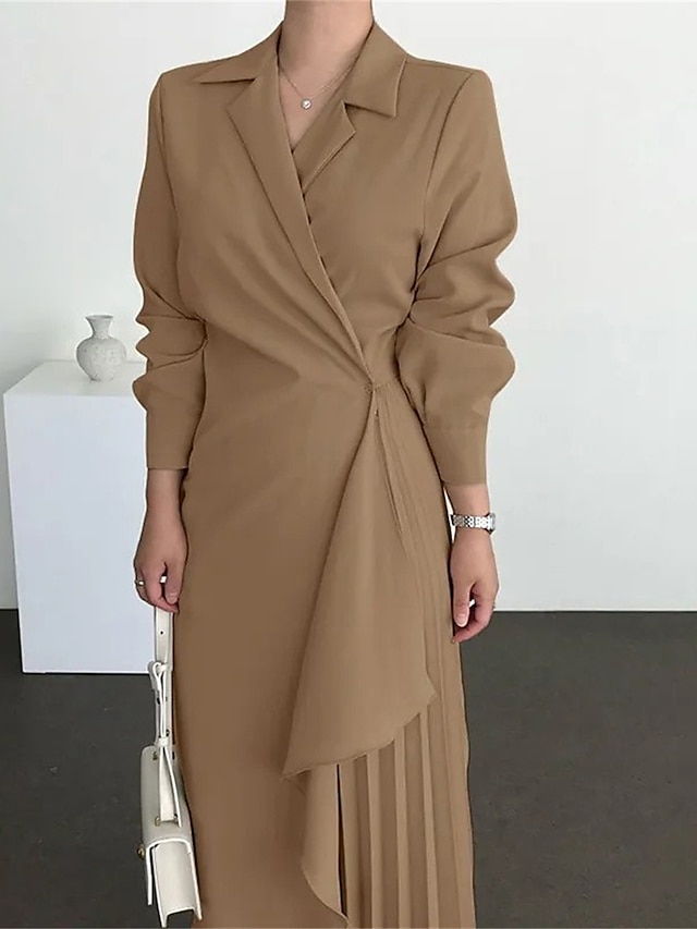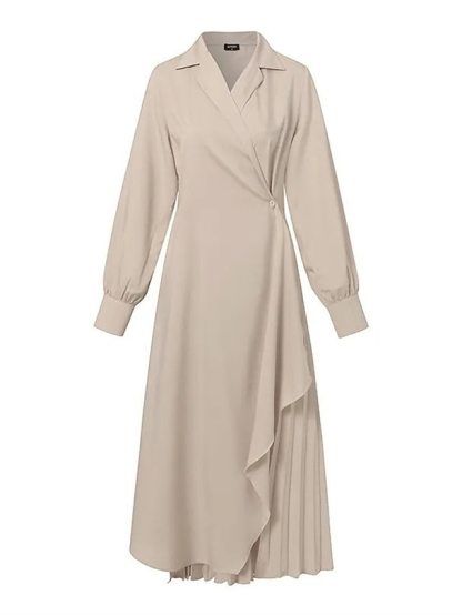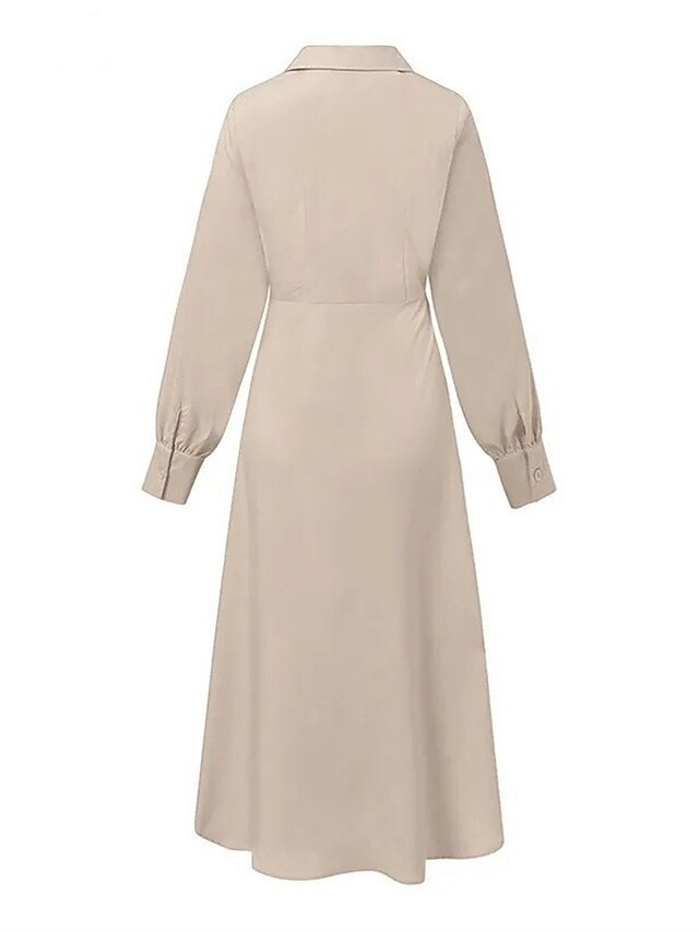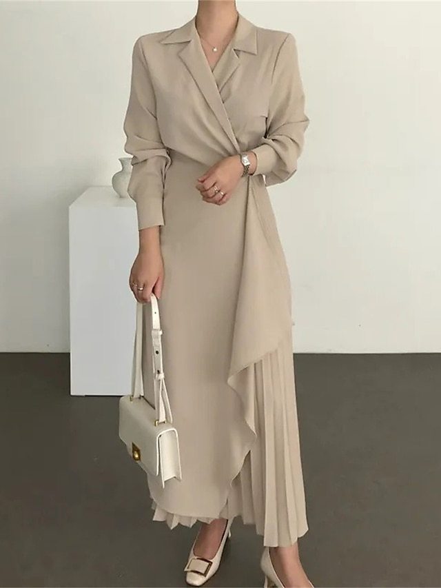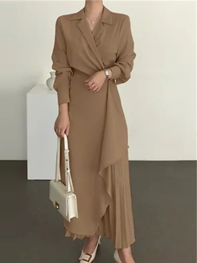 💃💕Women's Casual Dress Maxi long Dress Pleated Daily Elegant Fashion Shirt Collar Long Sleeve Black Brown Apricot Color