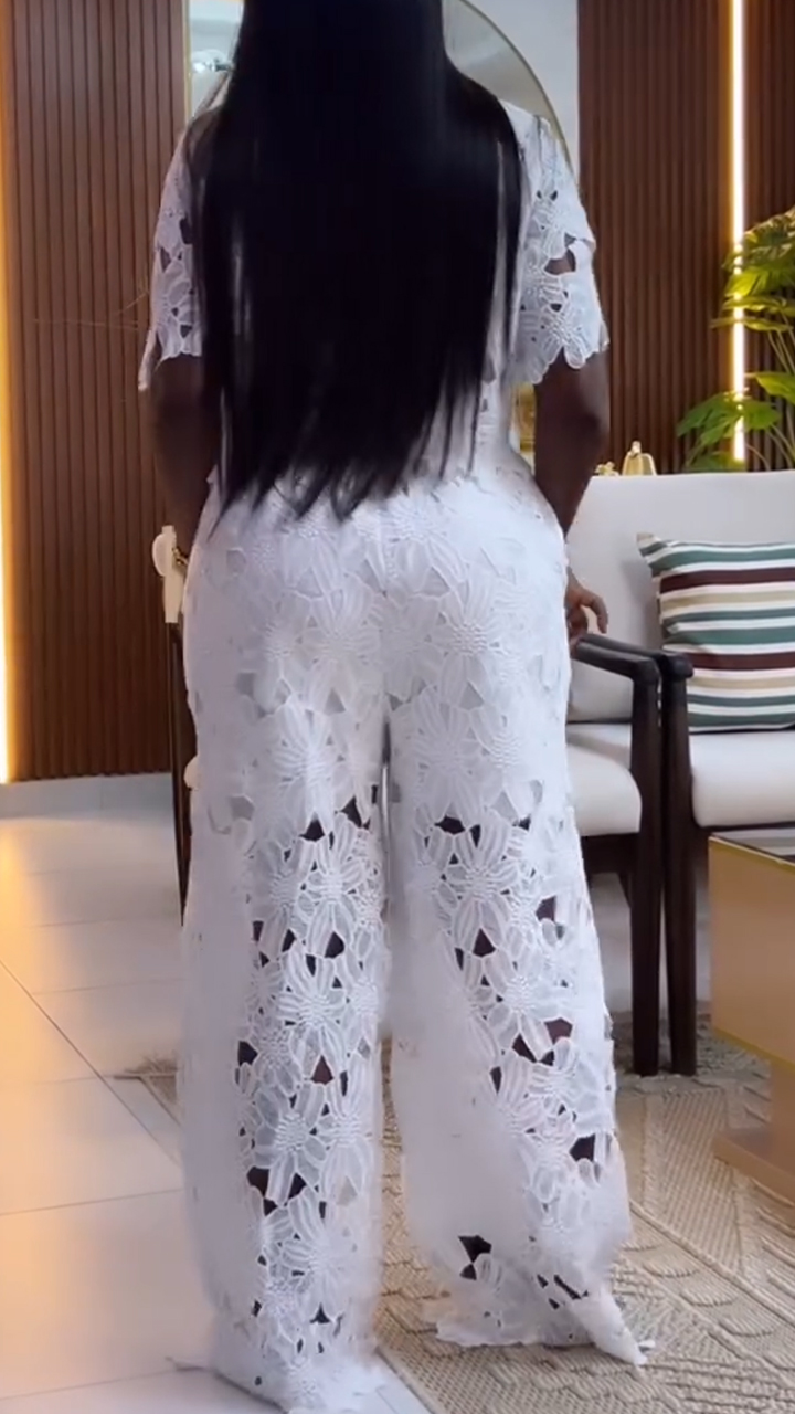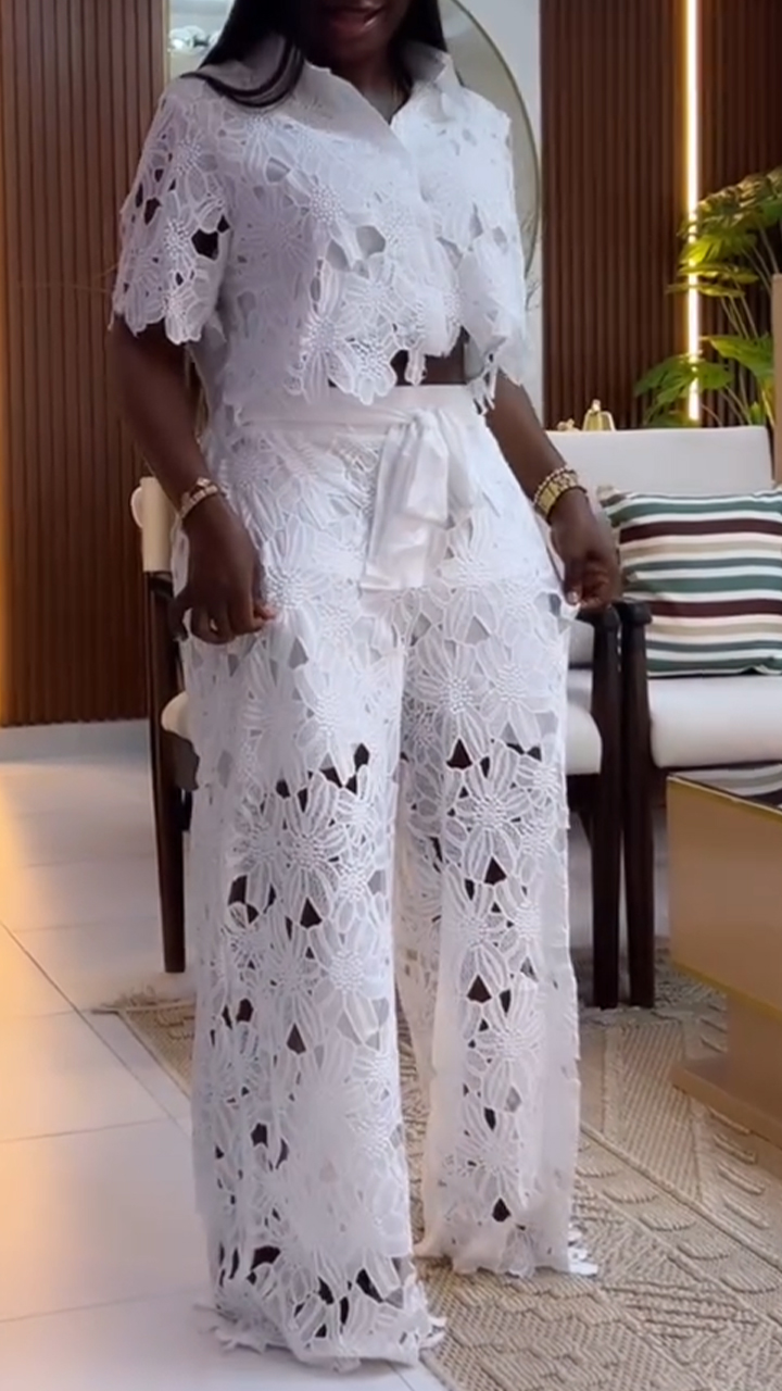 Women's Lapel Top + Trousers Hollow Casual Suit
