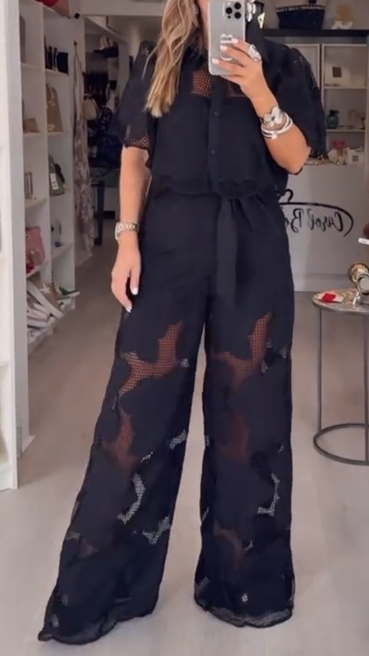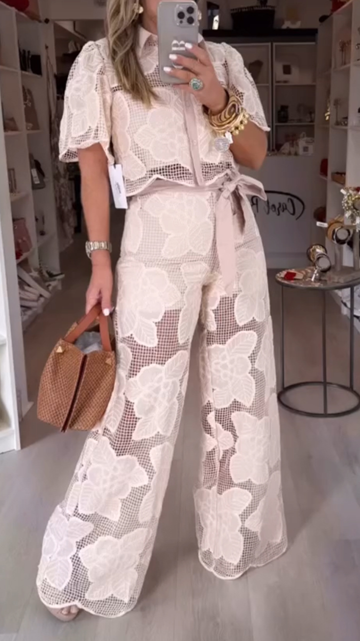 Women's Lapel Top + Trousers Hollow Casual Suit