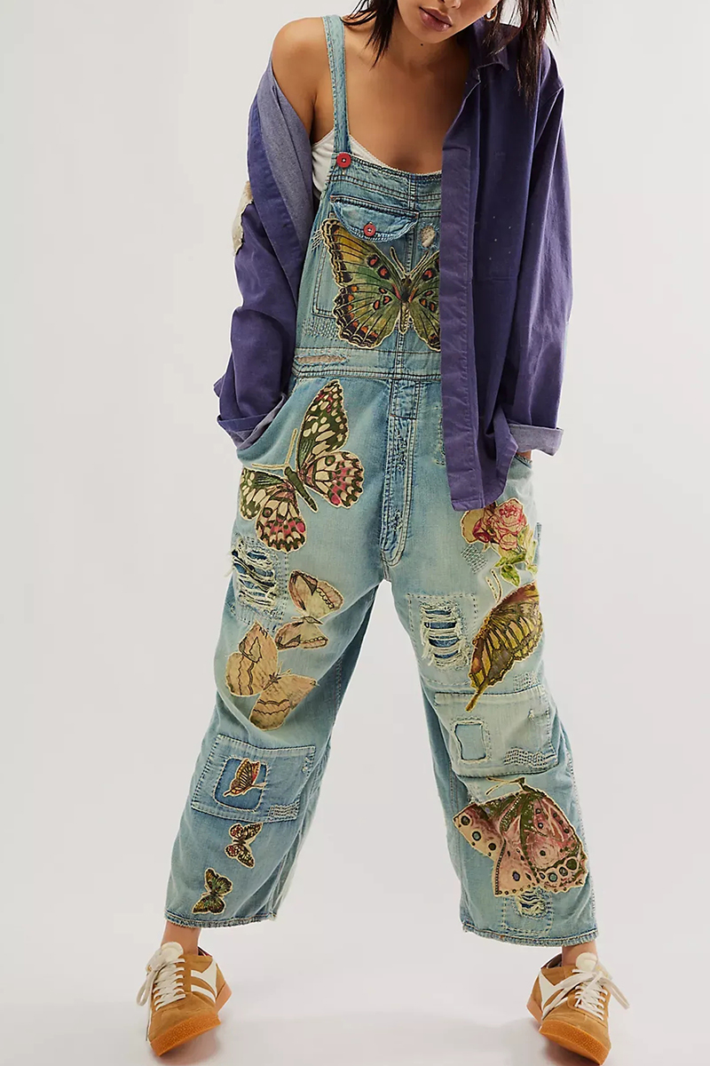 Women's Shoulder Strap Butterfly Print Casual Jumpsuit