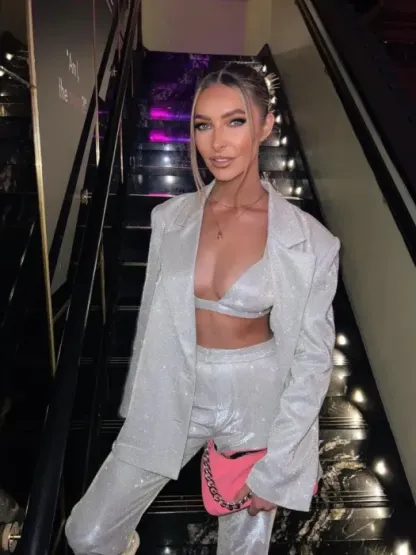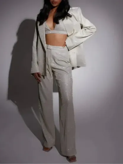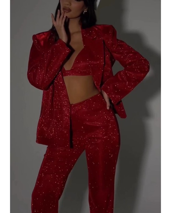 Women's Spring/Summer Sparkling Elegant Party Bra Blazer And Pant 3pcs Set